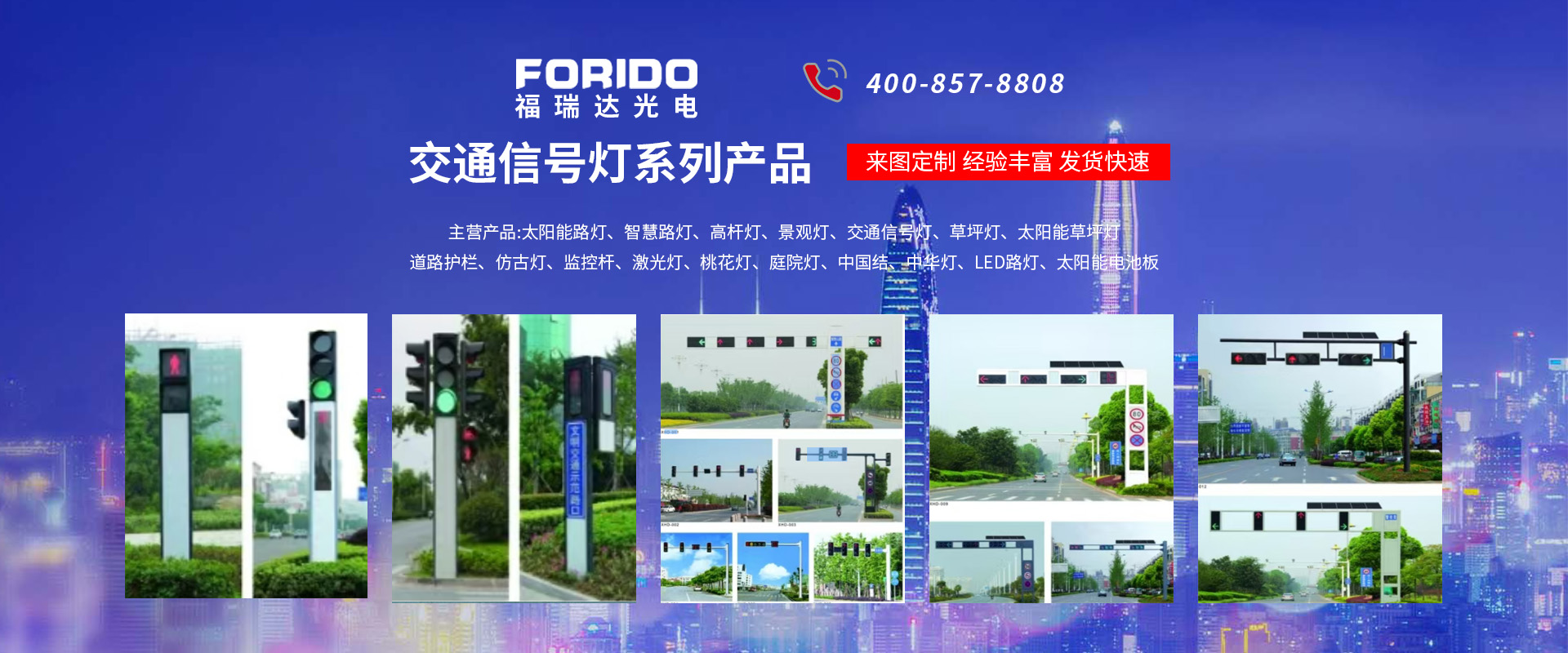 揚州福瑞達光電科技有限公司位于淮左名都歷史文化名城、中國路燈制造基地揚州市北郊菱塘工業(yè)園,公司占地面積76000平方米,注冊資金10518萬元,擁有高級技術(shù)嫻熟的員工280多人,擁有大型折彎機、激光切割、數(shù)控注塑機、壓鑄機、自動埋弧焊、氣焊、彩色粉末靜電噴塑等大型自動化設(shè)備,我公司是一家集設(shè)計、研發(fā)、生產(chǎn)、銷售、施工安裝服務(wù)為一體的戶外交通照明產(chǎn)品制造商,主要生產(chǎn)智慧路燈、太陽能路燈、LED路燈、高桿燈、景觀燈、交通信號燈、交通標(biāo)志牌、通信鐵塔、路跨鋼結(jié)構(gòu)、公交站臺、太陽能光伏組件、景點亮化、樓宇亮化工程的設(shè)計施工等。公司秉承開拓創(chuàng)新、銳意進取、精誠服務(wù)的企業(yè)精神,堅持以“誠信為本、技術(shù)為先、服務(wù)是金”的合作理念,我們憑借先進的制造工藝、優(yōu)質(zhì)的產(chǎn)品質(zhì)量、合理的市場價格和完善的售后服務(wù)贏得了廣闊的市場和客戶的信賴。  我公司已通過ISO9001質(zhì)量體系認證、ISO14001環(huán)境管理體認證,CQC產(chǎn)品認證,中國節(jié)能產(chǎn)品認證,通過“CCC”強制性產(chǎn)品認證,具有市政總承包,照明,交安,設(shè)計等資質(zhì)···